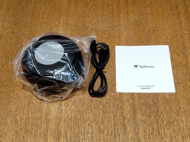 把蓝牙音箱的所有配件从包装内取出后,可以发现Taotronics吸盘式蓝牙音箱的全家福带来了Taotronics吸盘式蓝牙音箱主体、《使用说明书》和充电线一共3样东西。