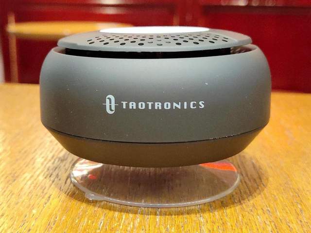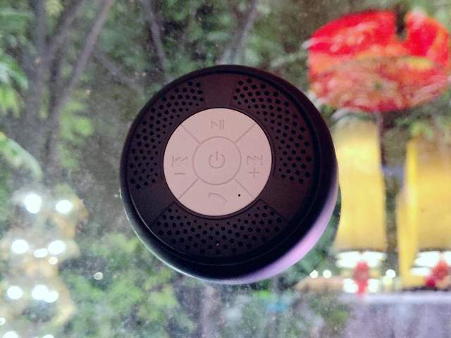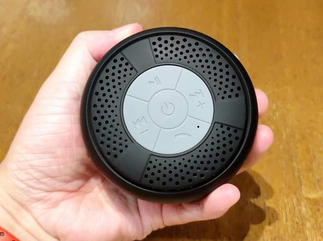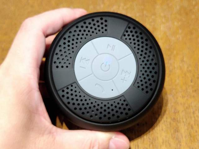 在蓝牙音箱的顶部,Taotronics吸盘式蓝牙音箱以最直观的方式带来了蓝牙音箱的操控按键。这些按键以圆形五分的设计,中间为蓝牙音箱的电源按键,四周等分出来蓝牙音箱的接听、播放/暂定和加减按键。