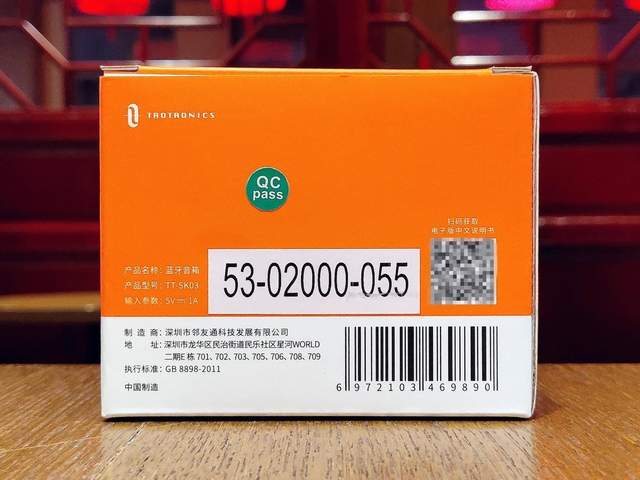 在包装的背面上,Taotronics吸盘式蓝牙音箱按国际惯例带来了相关的型号、厂牌、参数等的说明。但值得一提的是,作为海外著名品牌的Taotronics,现在回归国内市场,却在这里带来了电子版中文说明书,更加方便国人阅读使用。