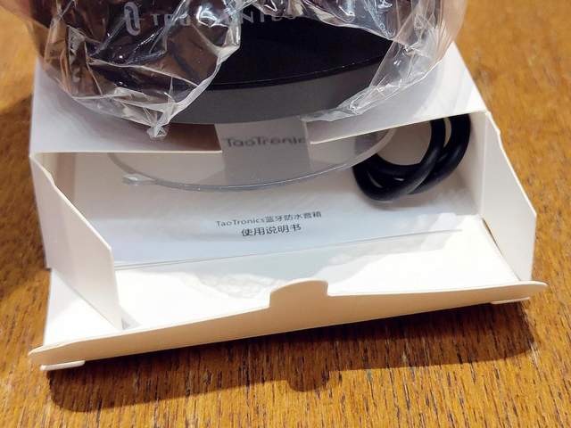 从底部固定的内包装的纸盒一侧打开,可以发现Taotronics吸盘式蓝牙音箱需要经过独特的开口才能正常取出。同时在内包装的纸盒里面,可以发现蓝牙音箱对应的《使用说明书》和其他配件就收纳其中。