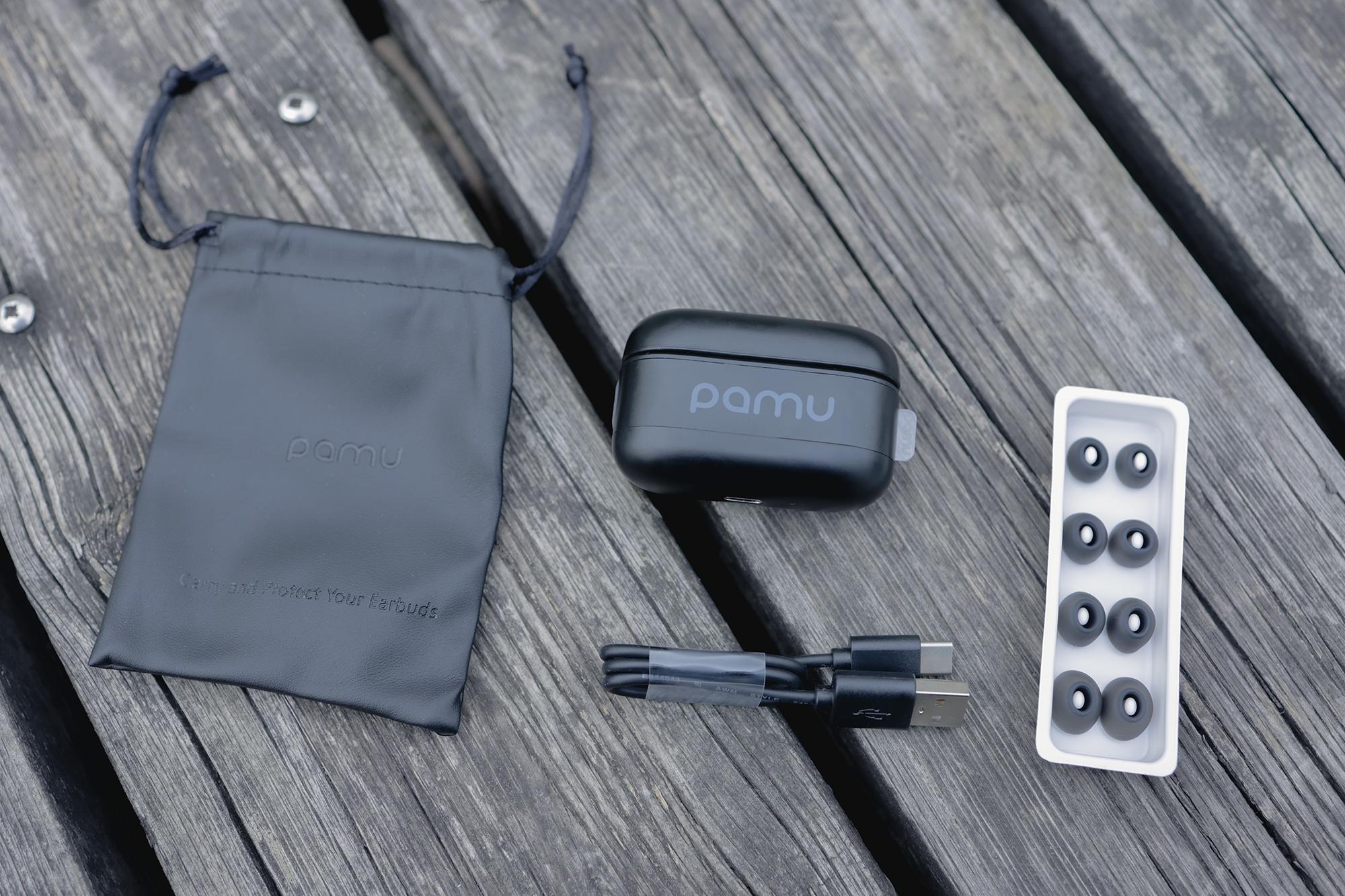 Pamu Z1的配件也是极其丰富,四对备用耳塞,TYPE—C的数据线,耳机袋都一次“佩奇”。