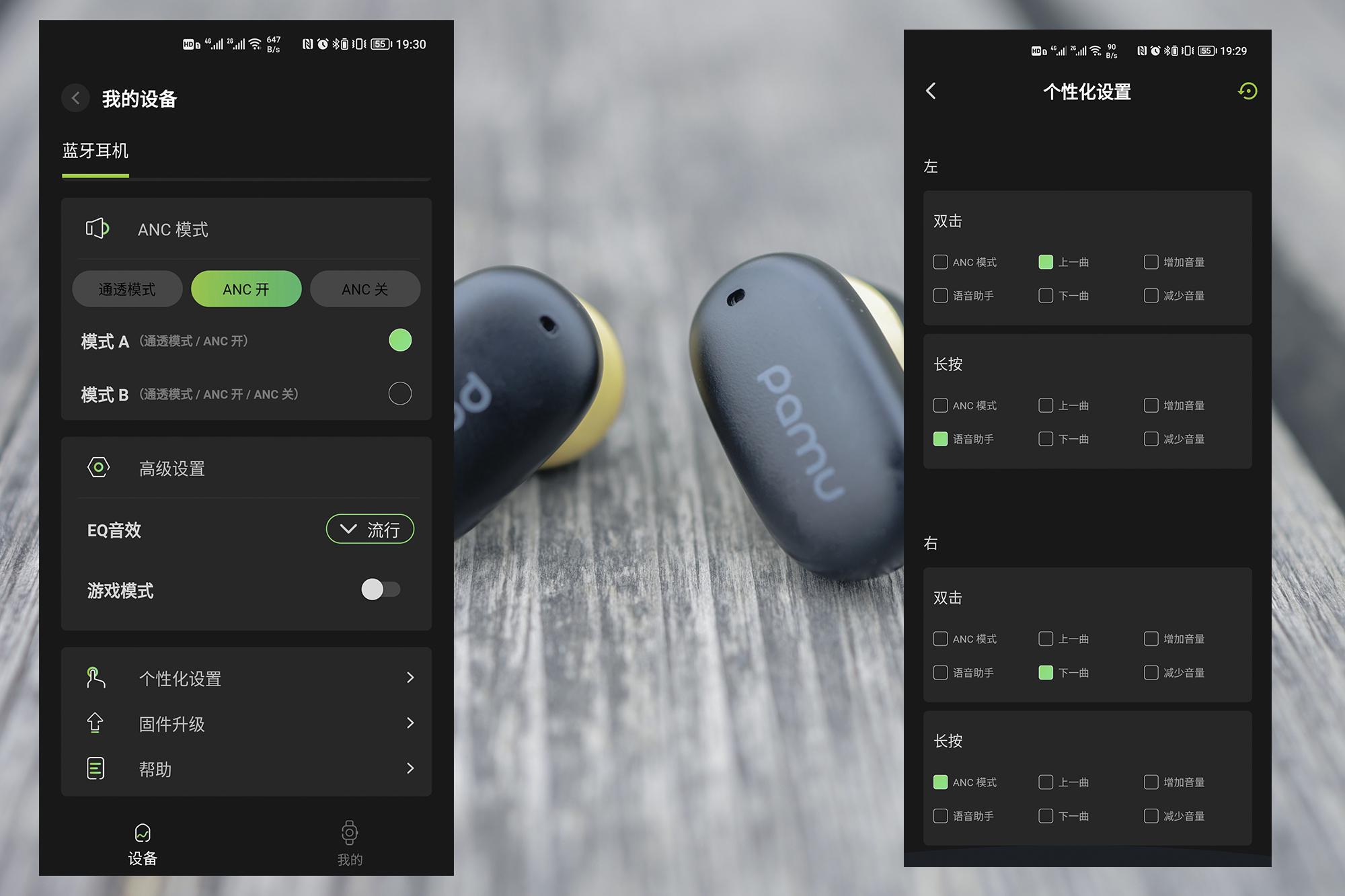 值得一提的是,Pamu Z1还有专属Pamu APP,搭配APP使用可以自定义耳机的所有操控逻辑,也就是每个按键我们都可以设置到自己习惯的按键设置,完全免去了使用的学习成本。