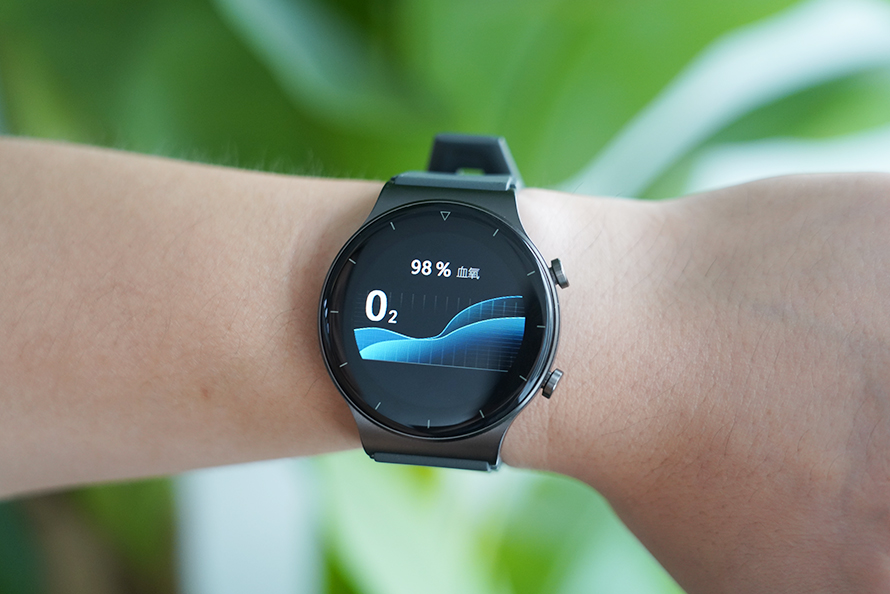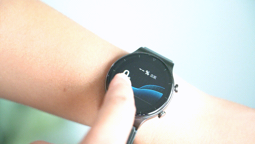 在测试血氧饱和度,需要将手表界面切换至血氧饱和度检测界面,停留大约10秒钟,手表便会自动显示出血氧饱和度检测结果,并且给了健康数值参看,日常活动血氧饱和度一般≥95%,夜间睡眠血氧饱和度≥90%,适合在高山、高原等环境使用。但是实际使用中发现,即便在开启了血氧自动测试的情况下,手机App显示的血氧信息不是按照设定时间间隔连续显示,可能需要后续版本的升级优化。