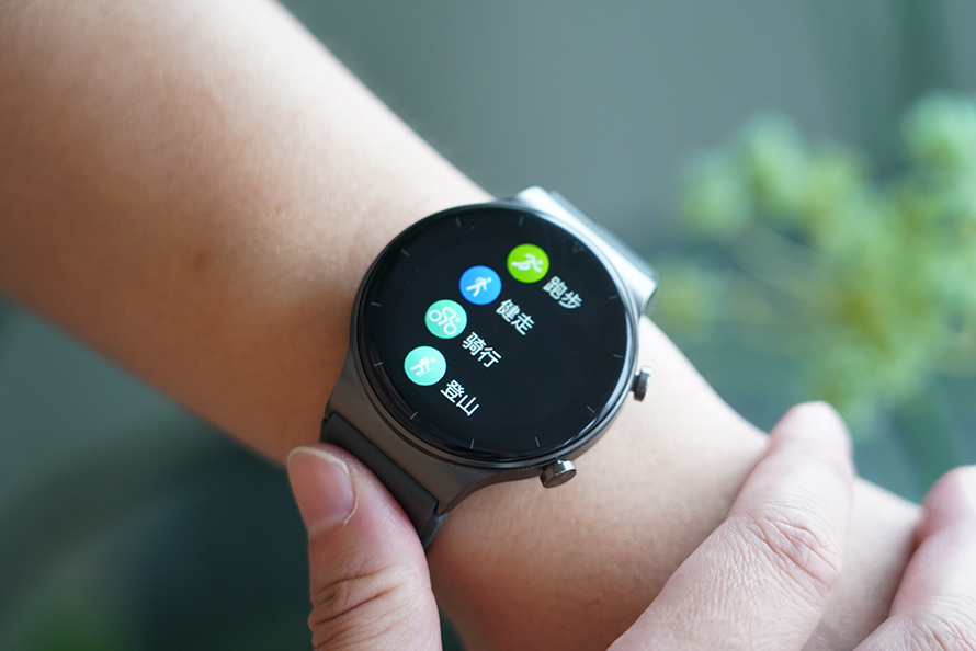 位于表盘的右侧配备了两颗实体按键,其中上键负责开机/关机键与返回键功能,而下键则是运动快捷键。按压下键可快速开启跑步、健走、骑行、登山等运动功能,在运动时可更快地找到相对应的功能,开始记录运动数据,节省了查找运动模式的时间,比较符合运动的快节奏。