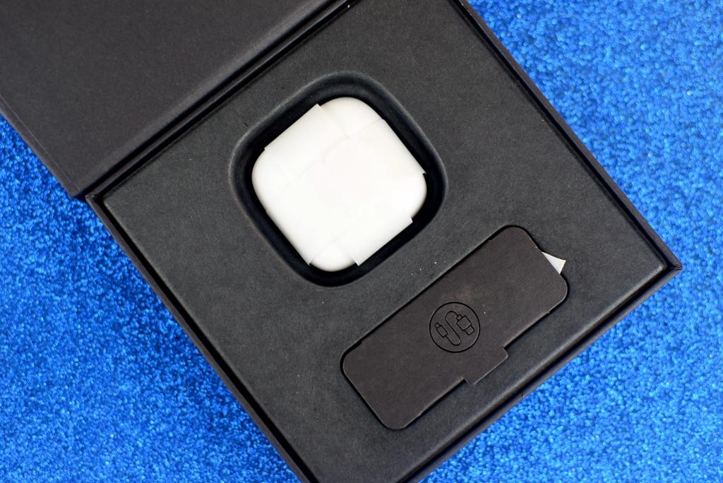 内里包装盒翻盖开启,挺有仪式感的,内里蓝牙耳机充电仓与充电线分区放置,都有独立包装。