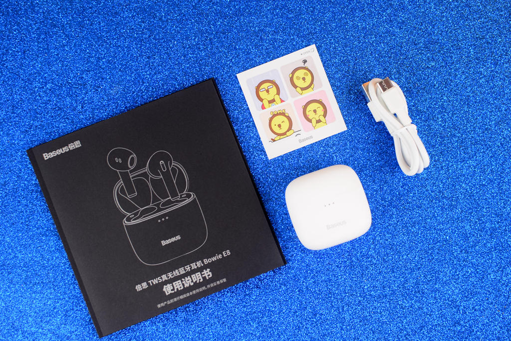 倍思是一家国产的配件品牌,之外你我也用过几款倍思的灯具,感觉质量不错。这款倍思Bowie E8的包装设计十分精致,很适合作为礼物送给朋友。这款耳机的配件不多,除了耳机本体之外还有一根数据线,用的是USB-C接口,日常充电比较方便。